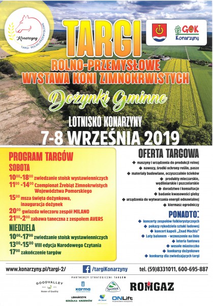 Zapraszamy na dożynki Powiatu Człuchowskiego połączone z dożynkami Gminy Czarne. W programie m.in. msza św. dziękczynna za plony, turniej gmin powiatu człuchowskiego, występy artystyczne oraz występ gwiazdy dozynek - Czadomana. Organizatorzy p[rzewidzieli równiez liczne konkursy dla uczestników dożynek.
