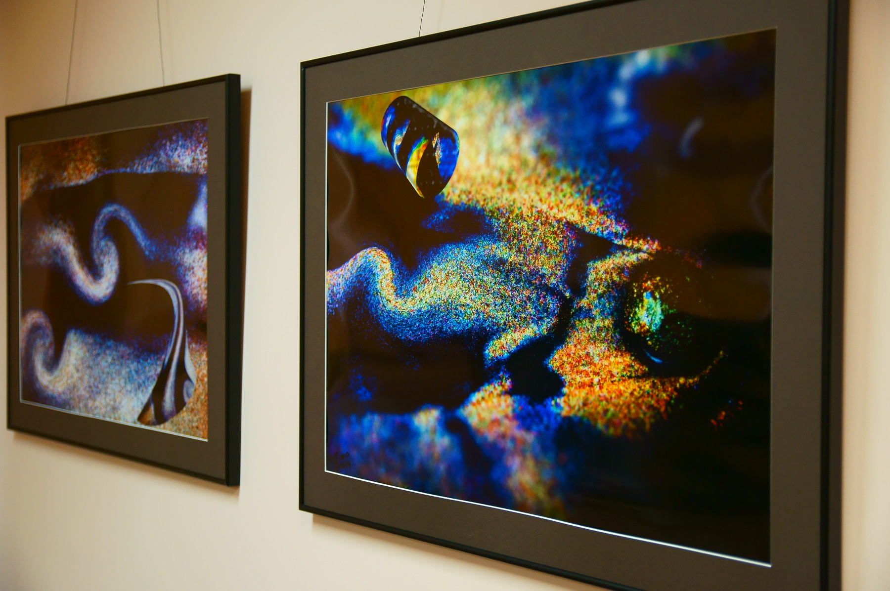 W człuchowskiej bibliotece prezentowane są zbiory artysty zawarte pod wspólnym tytułem "Odyseja" - fotografie podróży po czasie i przestrzeni. To cyfrowa przeróbka fotografii ziaren piasku, takich samych jakie można spotkać na polskich nadmorskich plażach. Artysta przerobił fotografie na kolorowe kolaże.