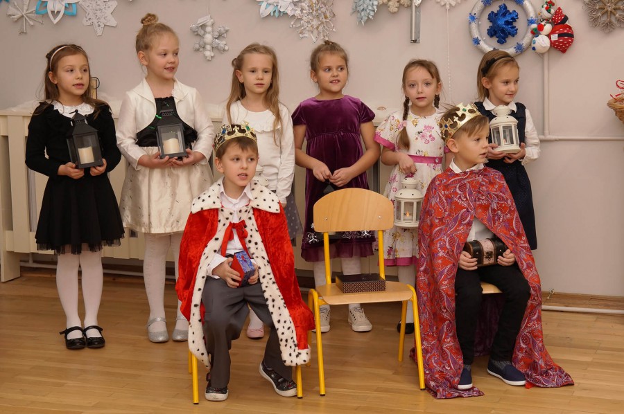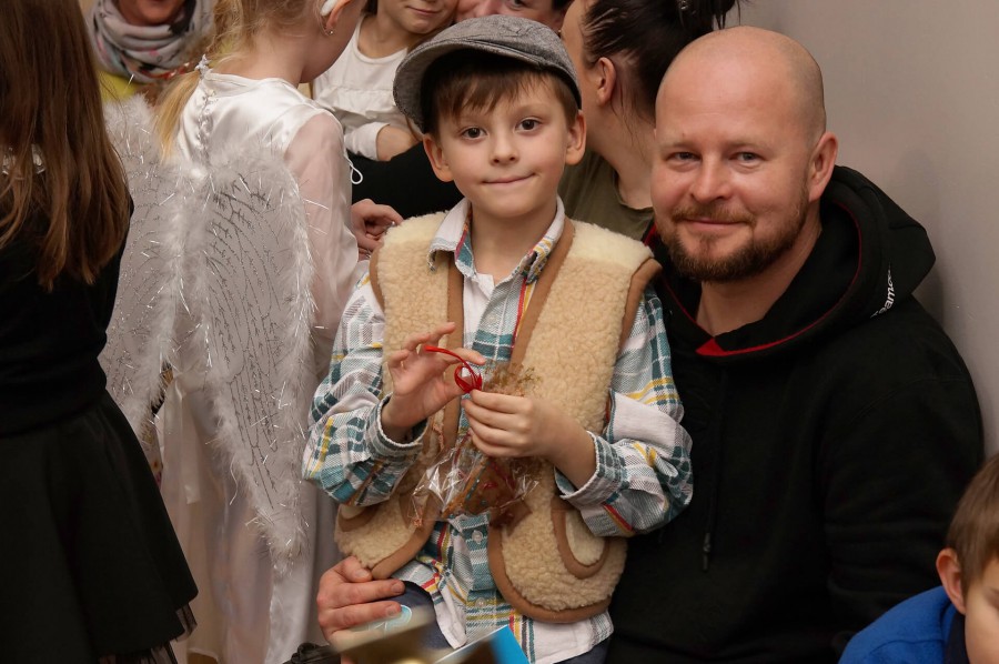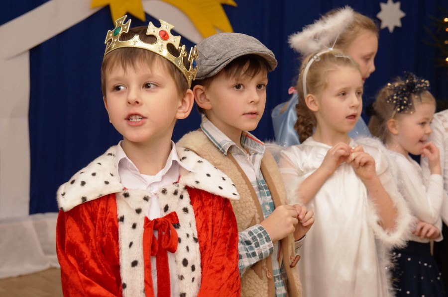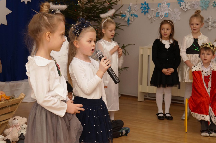 Historię Bożego Narodzenia maluchy przedstawiały w specjalnie na tę okoliczność przygotowanych kostiumach. Również scenografia nawiązywała do biblijnych wydarzeń. W finale spektaklu dzieci wraz z rodzicami zaśpiewały wspólnie kolędę.