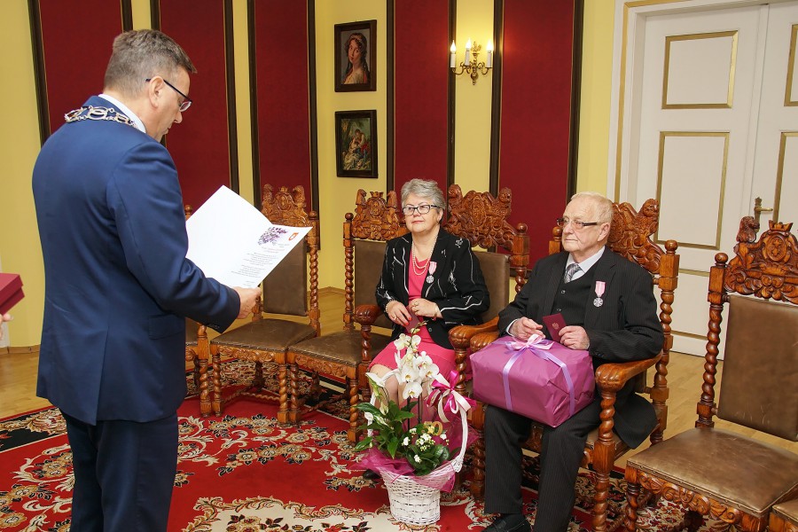 Uroczystość wręczenia medali za długoletnie pożycie małżeńskie odbyła się w człuchowskim Ratuszu. Państwo Urszula i Stefan Jażdżewscy świętowali 50 rocznicę swojego ślubu. Z tej okazji Prezydent Rzeczpospolitej Polskiej przyznał im okolicznościowe medale. Były też kwiaty i upominki od władz Miasta Człuchowa.