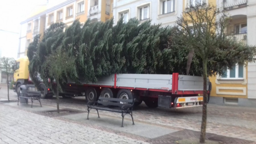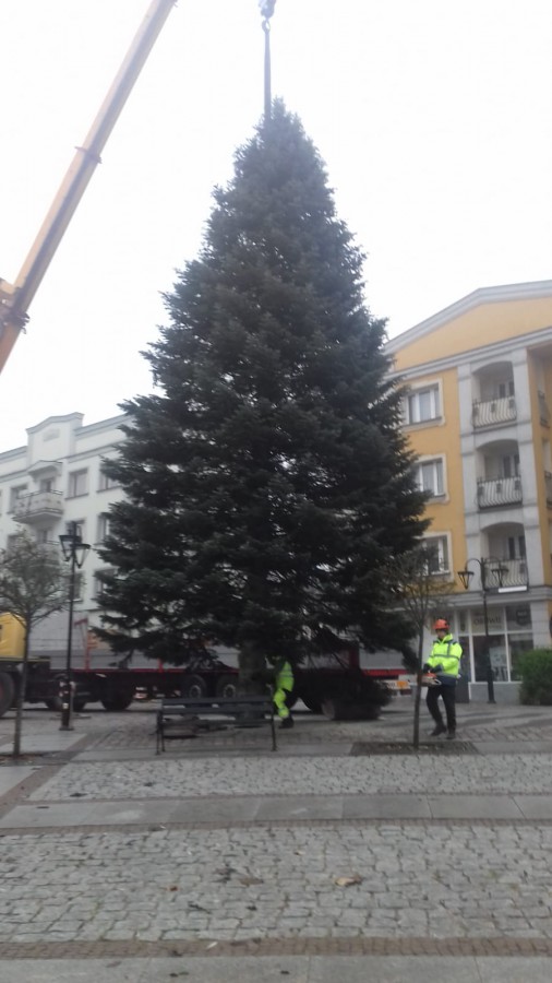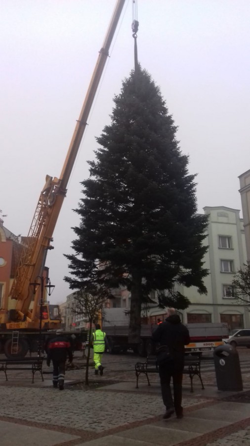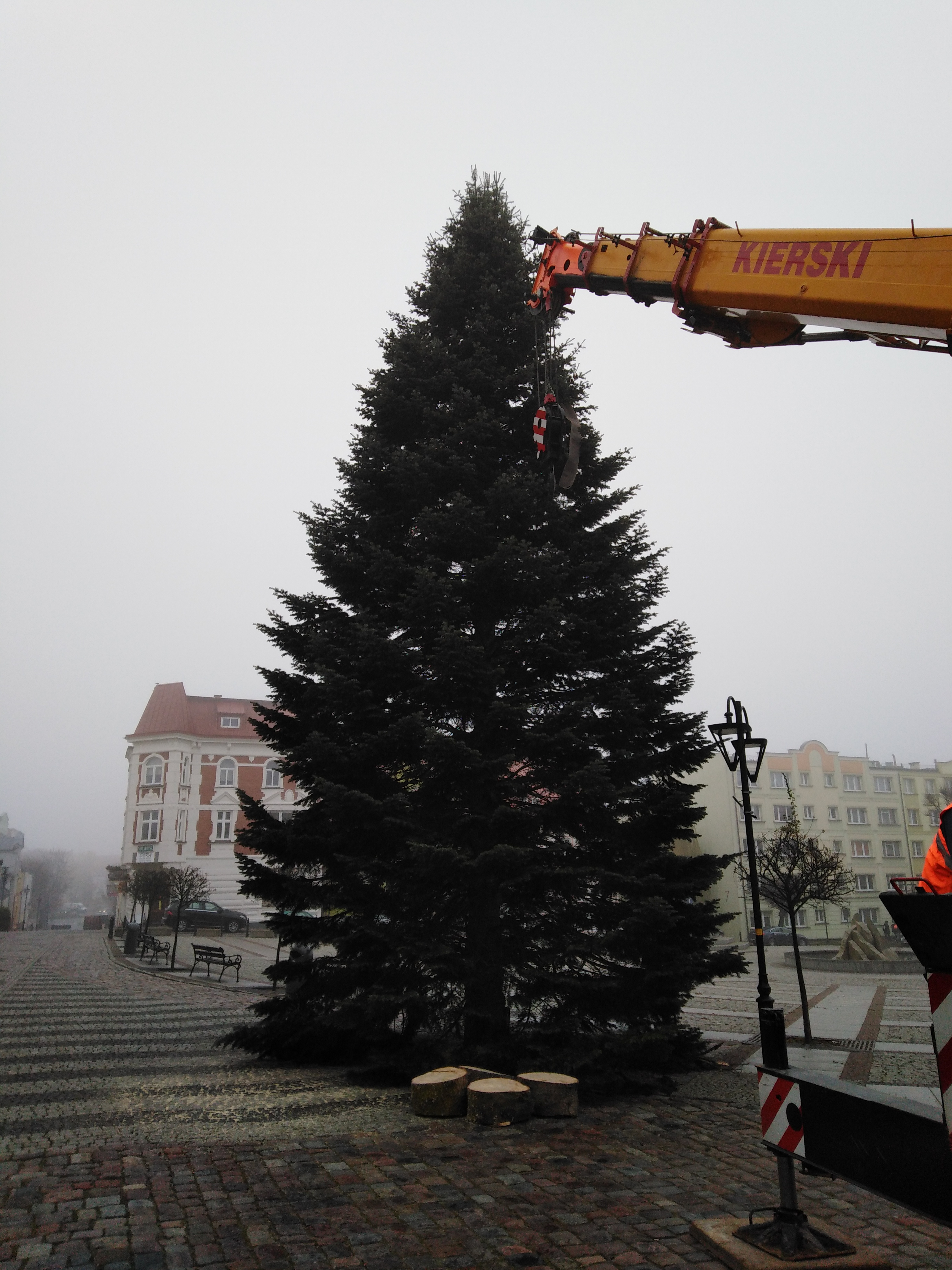 OLBRZYMIA JODŁA JUŻ ZDOBI CZŁUCHOWSKI RYNEK