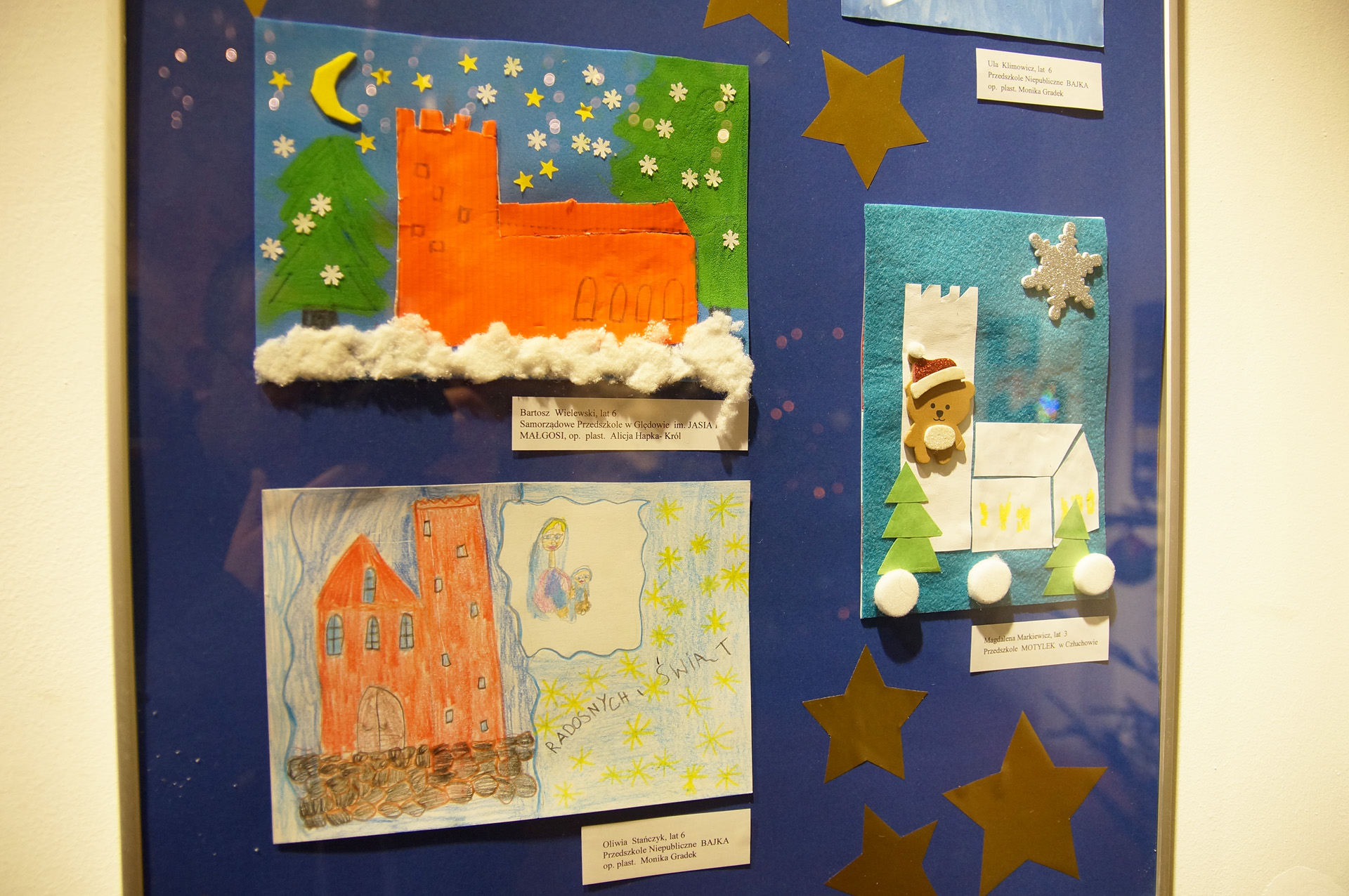 Każdy z nich miał za zadanie przygotowanie ozdoby świątecznej lub kartki bożonarodzeniowej, na której umieszczony został element architektury charakterystyczny dla miejscowości, z której pochodzi młody artysta. Najwięcej prac zawierało w sobie wizerunek człuchowskiego zamku, co świadczy o ogromnej popularności konkursu wśród małych mieszkańców Człuchowa. Były też prace nadesłane między innymi z Rzeczenicy, Koczały i Bukowa. Wszystkie one zostały wyeksponowane w muzealnej galerii. Będzie je można oglądać do 13 stycznia.