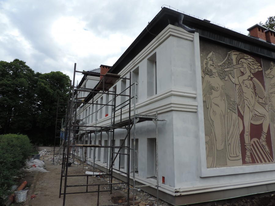 Wykonawca przystąpił do wykonania elewacji z blachy perforowanej.