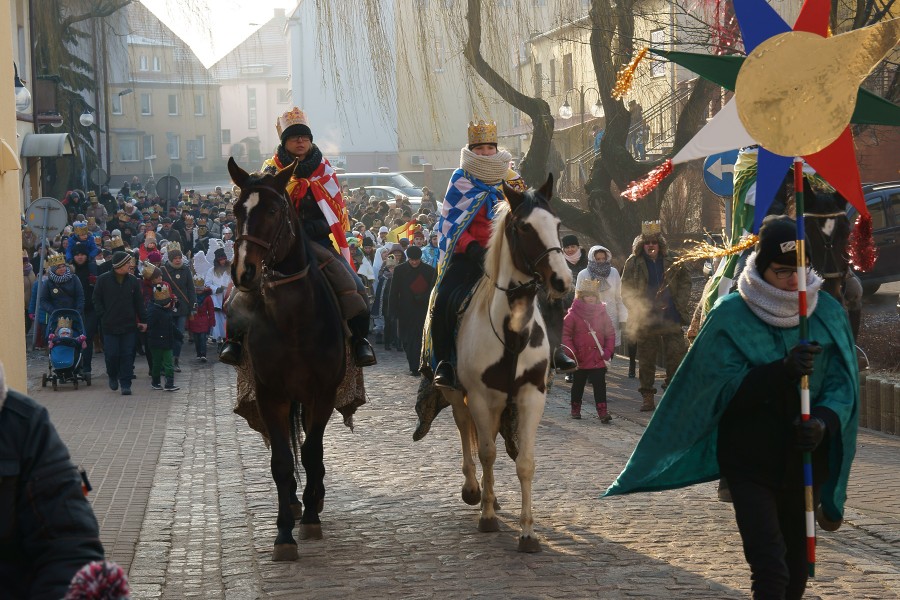 Kilkuset mieszkańców i gości, mimo mrozu, uczestniczyło w Orszaku Trzech Króli w Człuchowie. Impreza odbyła się w tym mieście już po raz czwarty. Tradycyjnie korowód wyruszył sprzed kościoła p.w. Św. Jakuba i przeszedł ulicami przylegającymi do Rynku. Aktorzy działający przy kole teatralnym Miejskiego Domu Kultury, przygotowali także widowisko plenerowe. Było spotkanie z królami, rycerzami, dworskim orszakiem, a także walka dobra ze złem. Na końcu pielgrzymi dotarli do stajenki w której czekali Józef, Maryja i mały Jezus. Całość oprawiono w stroje z epoki. "Najbardziej cieszy fakt, że w organizację wydarzenia angażuje się coraz więcej osób. Mieszkańcy uczestniczą w nim całymi rodzinami" - mówi siostra Noemi, Franciszkanka - pomysłodawczyni imprezy. Wśród aktorów znalazła się nie tylko młodzież szkolna, ale także dorośli i dzieci. Łącznie było to kilkadziesiąt osób.