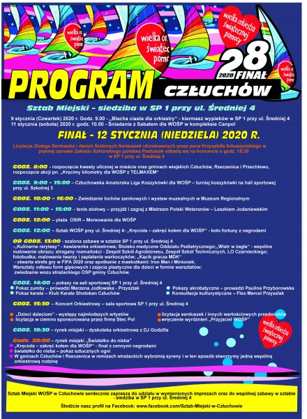 W tym roku człuchowski sztab swoim zasięgiem obejmuje nie tylko miasto Człuchów, ale także gminę wiejską Człuchów, gminę Rzeczenica oraz gminę Przechlewo. Przypominamy też, że siedzibą sztabu tym razem wyjątkowo będzie budynek Szkoły Podstawowej nr 1, przy ulicy Średniej 4a w Człuchowie. To ze względu na remont obiektu domu kultury.