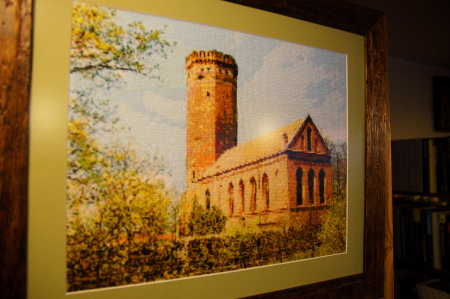 Obecnie w kolekcji rodzinnej jest już kilkadziesiąt prac. Na wystawie zaprezentowano tylko część zbiorów. Wśród nich jest między innymi reprodukcja obrazu Świętego Jana Pawła II. Jego wykonanie, przy pomocy igły i nici, zajęło autorowi, czyli panu Karolowi - prawie rok. Nad obrazem "Papież w objęciach Maryi", pracował on 18 miesięcy.